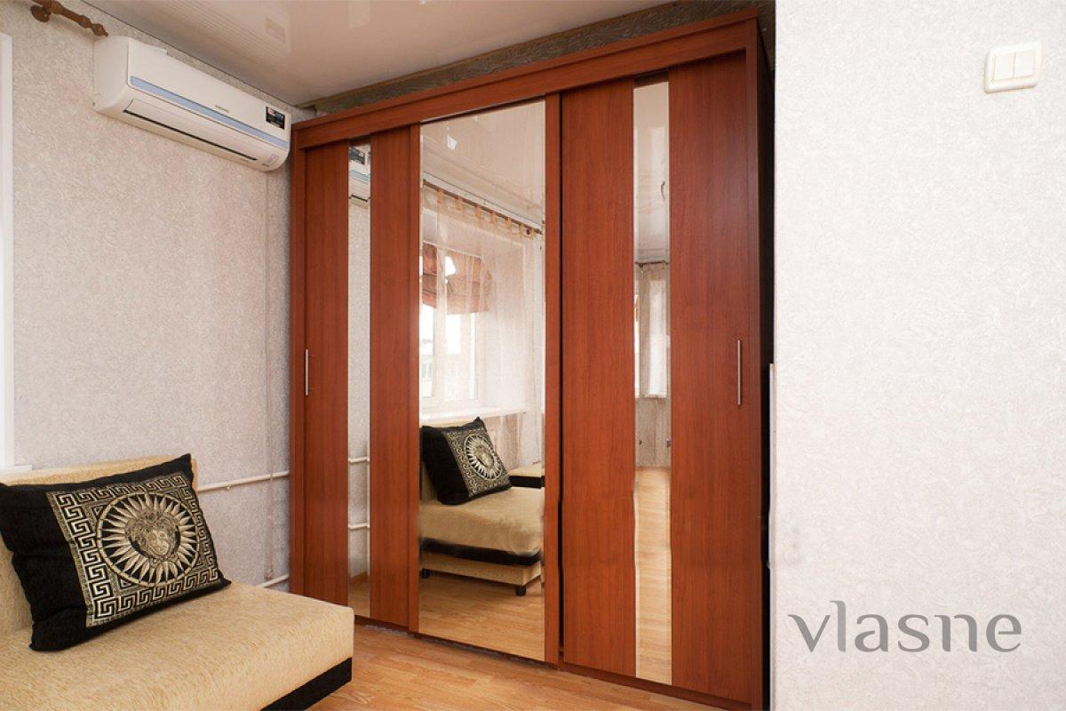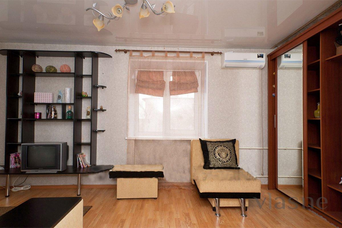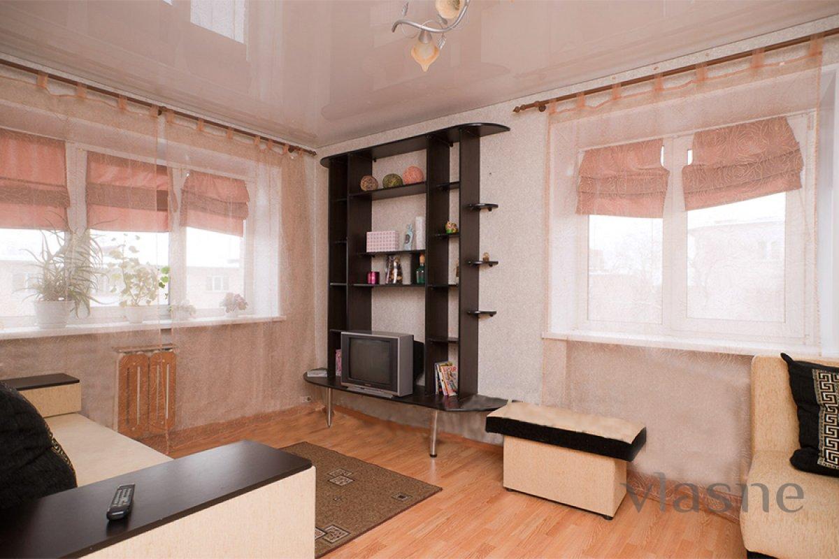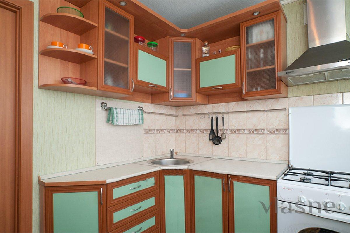 Stage 4/5. The apartment has cable TV, unlimited Internet Wi-Fi. The apartment is located in 2 stops from the train / station. Close to: shopping malls, TC "Lightning", park them. Pushkin, cafes and restaurants. Kitchen table, a kitchen set, kettle, microwave oven, gas hob, extractor fan. Room sofa, chair bed, wardrobe, TV, air conditioning.