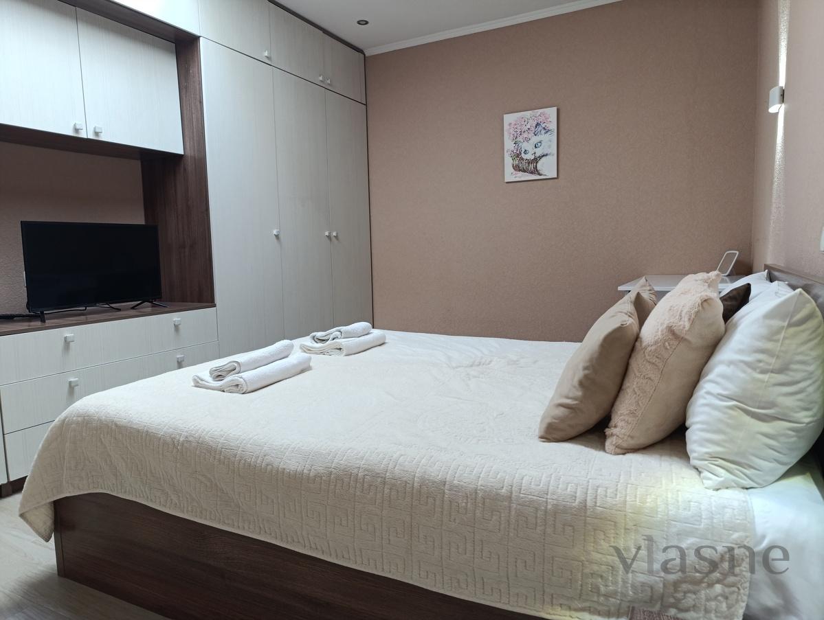 All monuments of architecture, entrusting numerous shops, bars, restaurants with administrative installations are readily available. To vul. O.Kobilyanska-450 m. The apartment has a double bed (1.6*2.0m) and a folding sofa (bedroom size 1.4*2.0m). The apartment has air conditioning. Everything you need for a short-term and trivial stay.