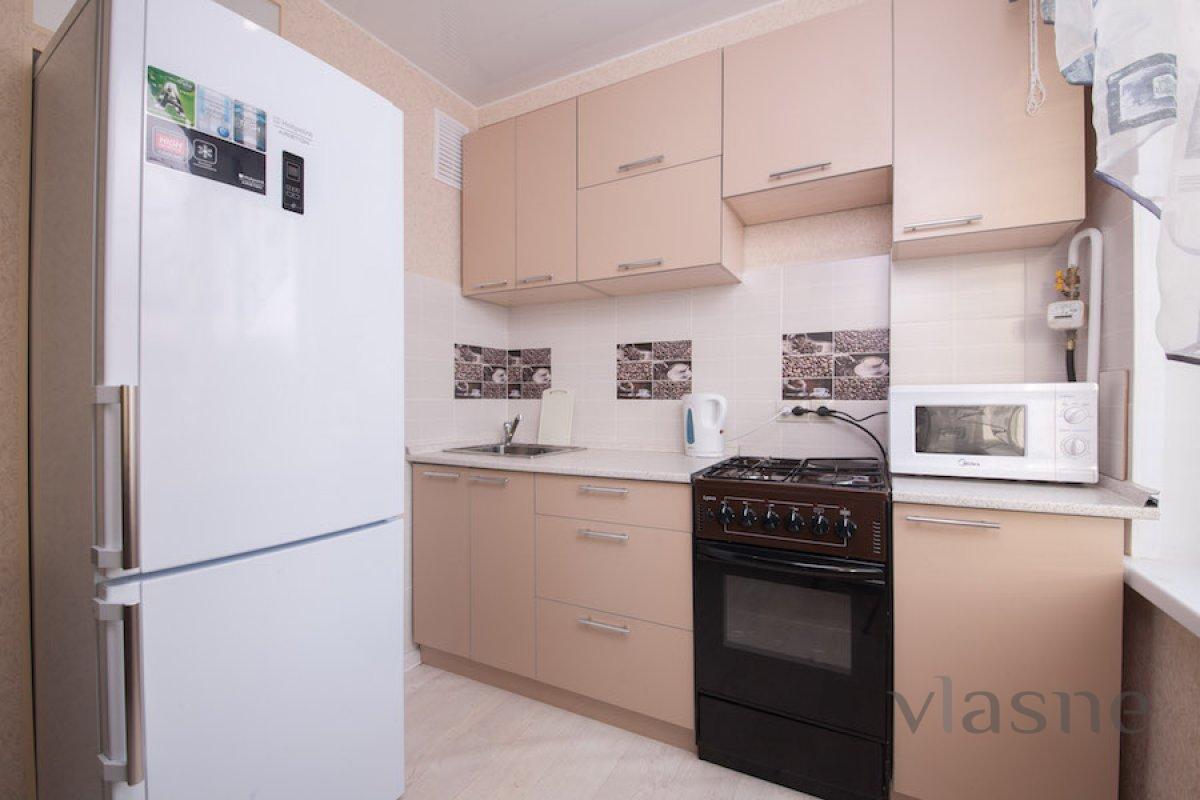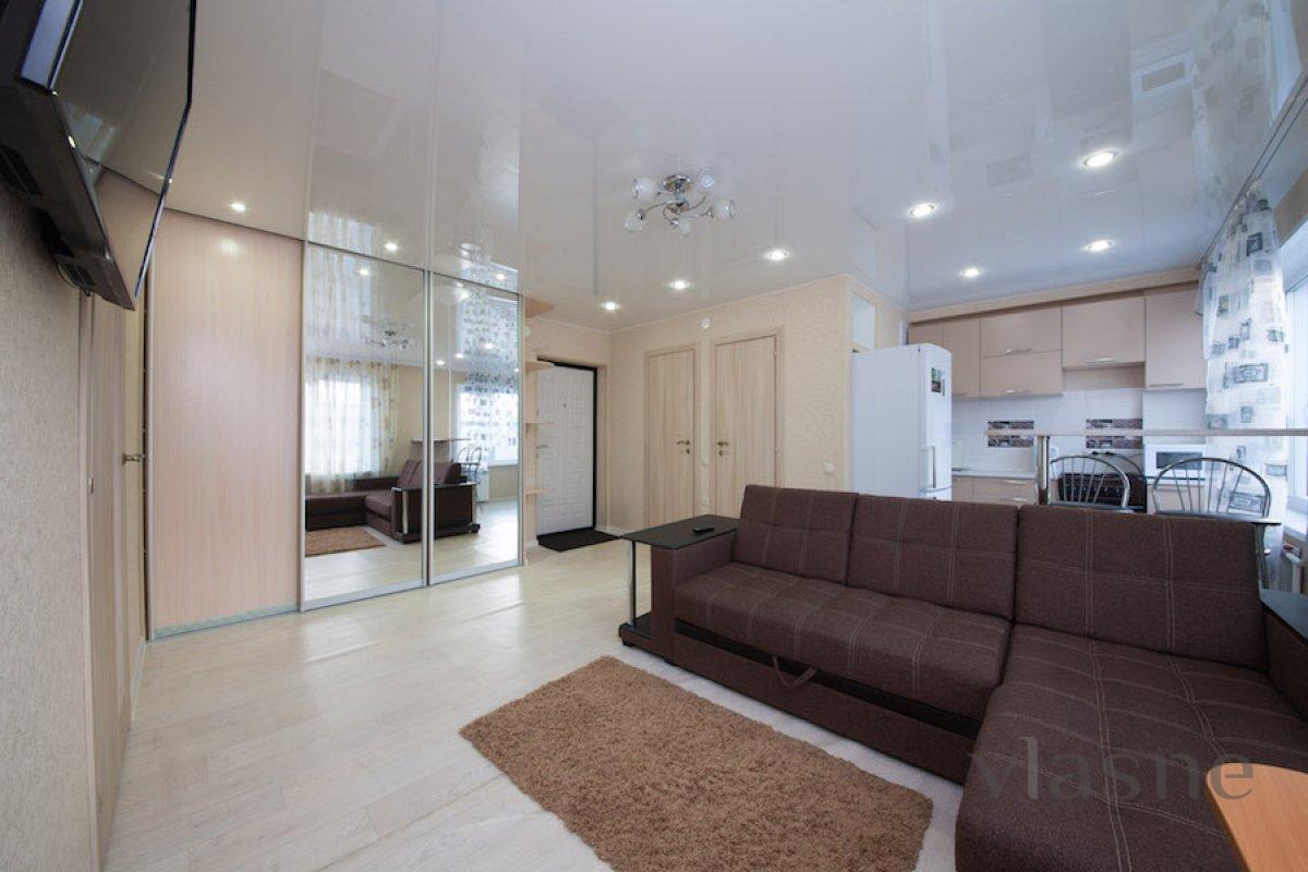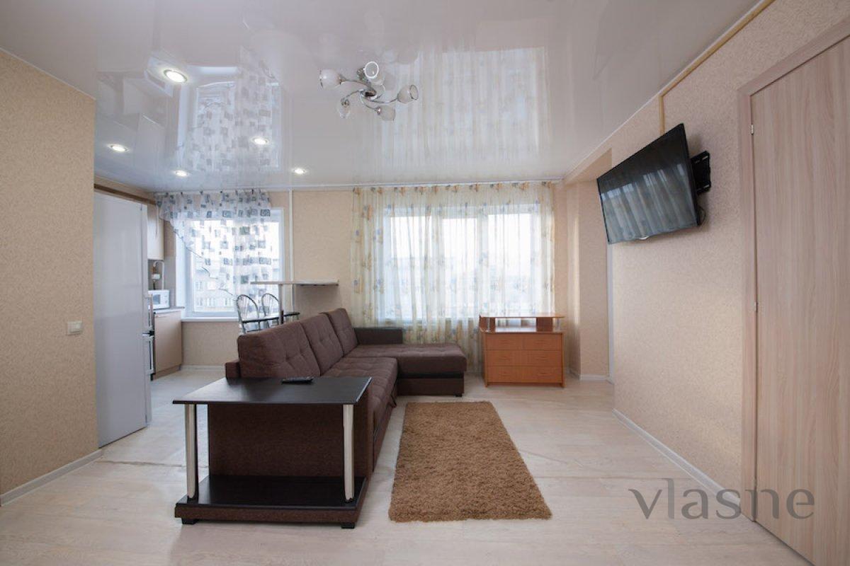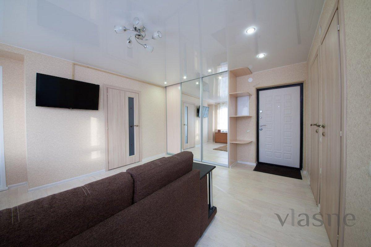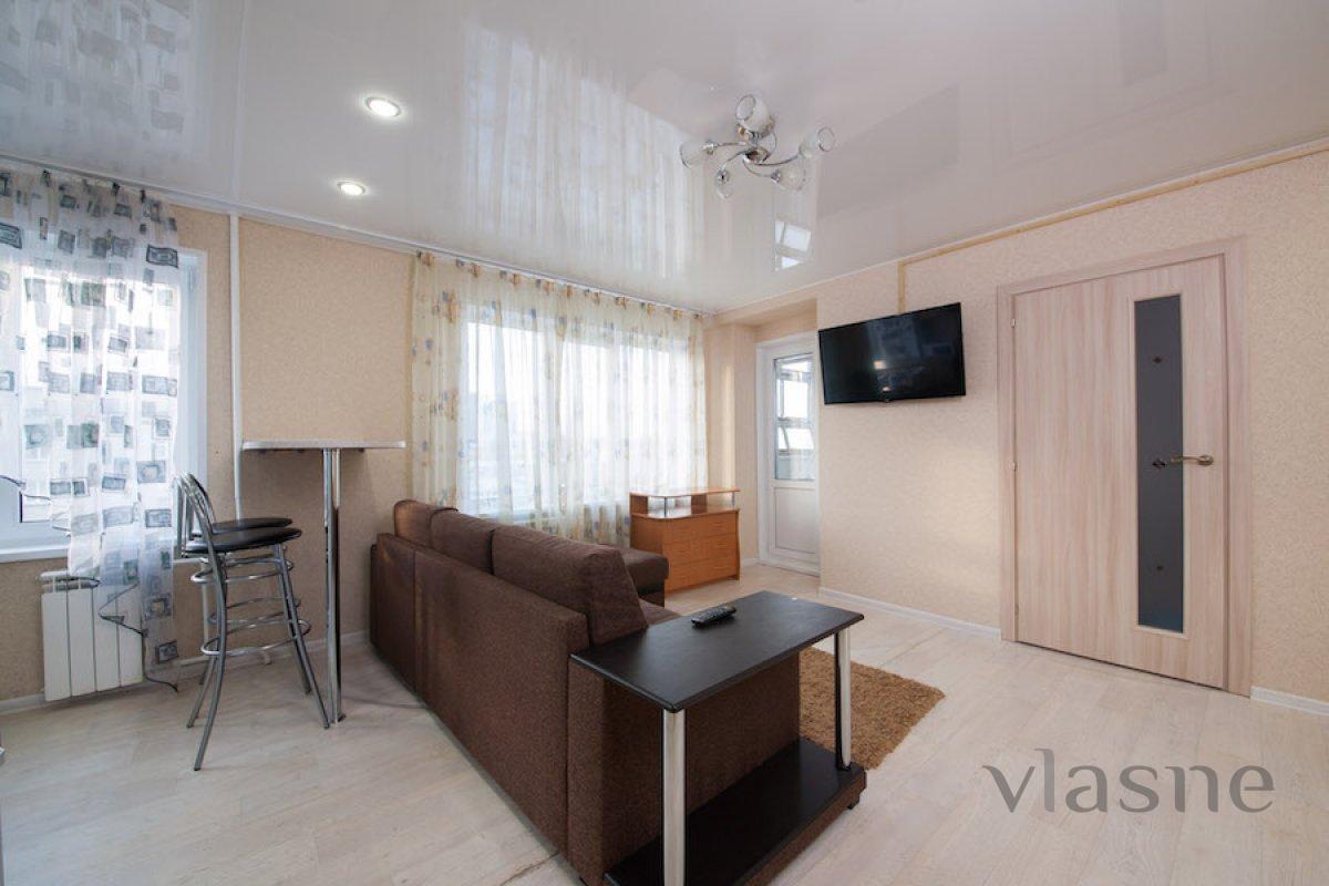 The cozy, comfortable and bright one bedroom apartment - studio located in a quiet picturesque area of the city center close to the embankment of the river and the adjacent park. In the living room a comfortable sofa which easily converts into a large bed, modern plasma TV will not be bored in the evenings and free Wi-Fi will allow to be always on the network.