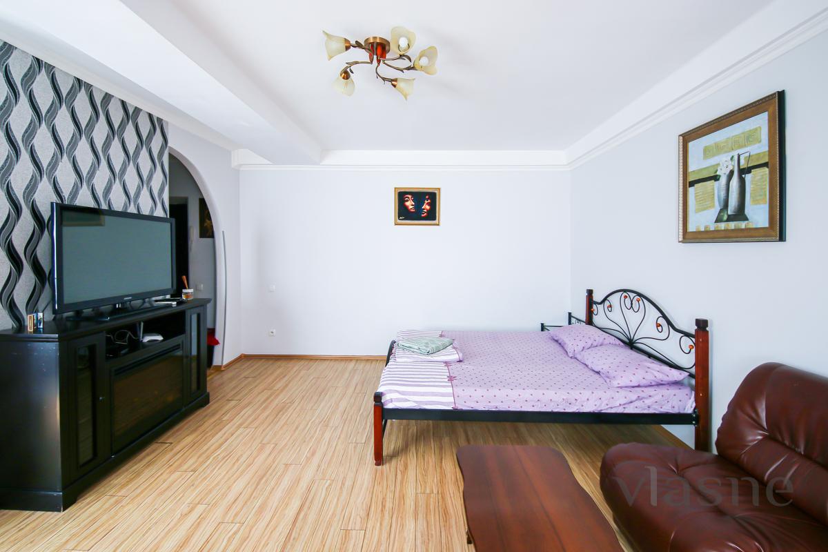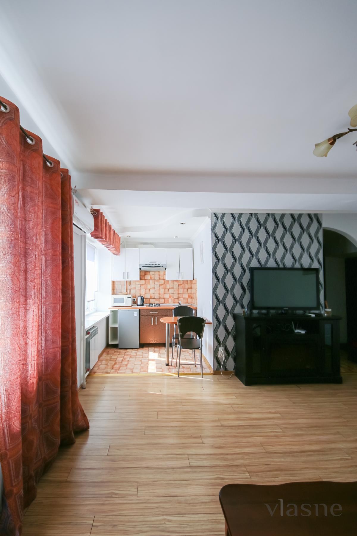 Aydınlık daireler, ahşap mobilyalarla açık renklerde dekore edilmiştir. Koridorda kişisel eşyalar için aynalı büyük bir gardırop bulunmaktadır. Mutfak alanı, ahşap elemanlı bir set, çalışma yüzeyi ve gömme lavabo ile donatılmıştır. Gerekli tüm mutfak aletlerinin yanı sıra ev aletleri de mevcuttur: buzdolabı, ocak, davlumbaz, mikrodalga fırın ve su ısıtıcısı. Yakınlarda sandalyeli bir yemek masası bulunmaktadır. Yatak odasında konforlu bir konaklama için ihtiyacınız olan her şey mevcuttur: ortopedik yataklı çift kişilik yatak, komodinler, TV'li çekmeceli dolap, sehpa ve koltuklar. Banyo, duşakabinle birleştirilmiştir ve ayrıca lavabo, askılı ayna ve su ısıtıcısı ile donatılmıştır. Her zaman temiz yatak çarşafları, temiz havlular ve banyo malzemeleri mevcuttur. 7/24 telefonla rezervasyon yapın!