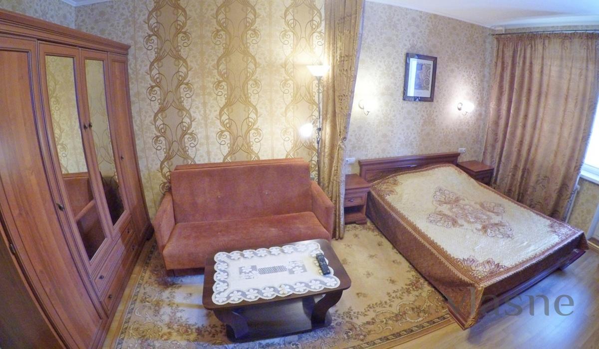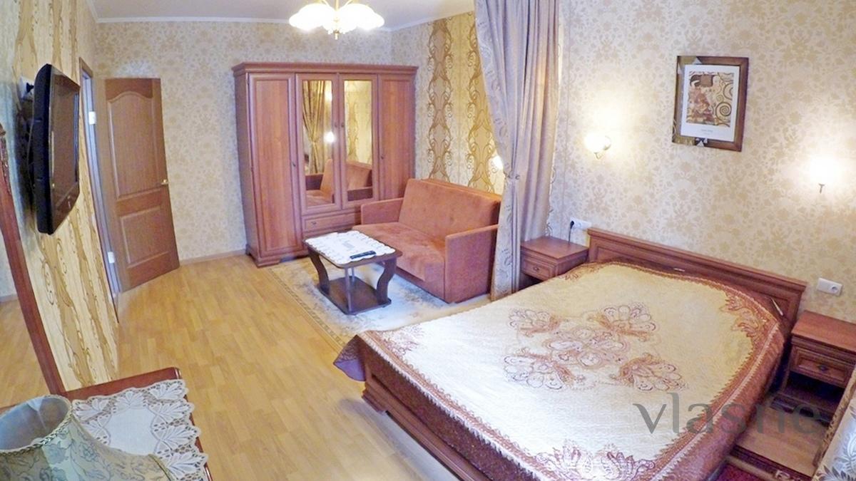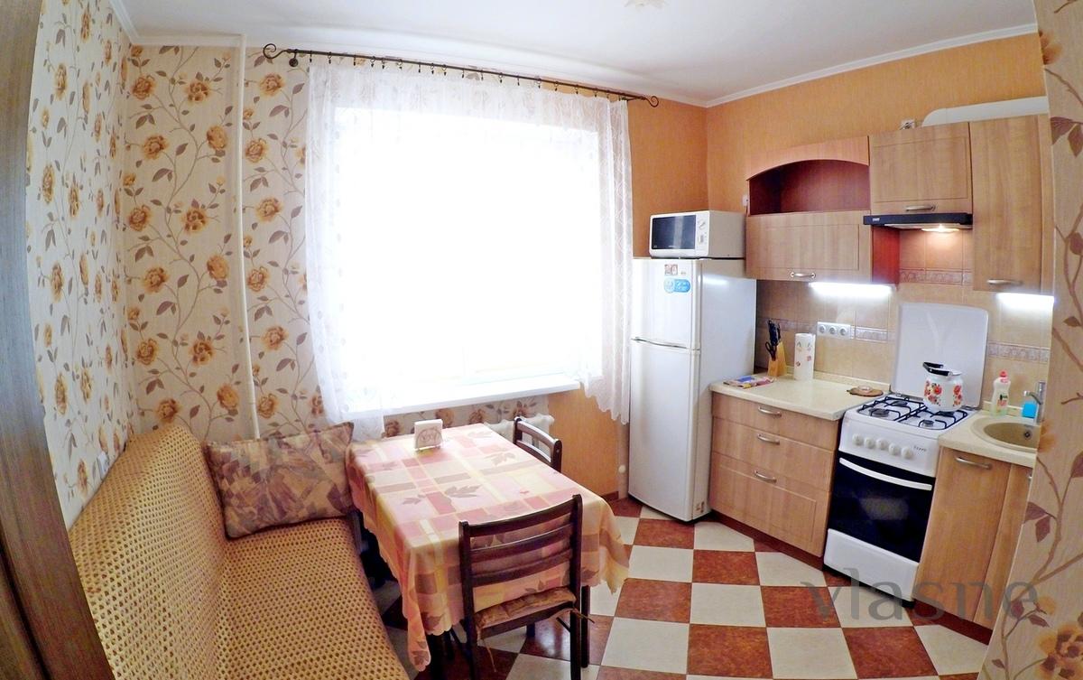 Good condition, clean, neat apartment. Furniture, cable TV, telephone, Internet (WI-FI), all amenities, refrigerator, stove, microwave, bathroom, bedding, dishes, glazed balcony. A room of 20 sq.m with two or twin beds, kitchen of 10 sq.m. two-bedroom with a full couch. Street. Gorky, near (100m), supermarket, cafe, restaurant, parking. From 1100 rubles per day. Rent (the owner) visitors. Perhaps booking and transfer.