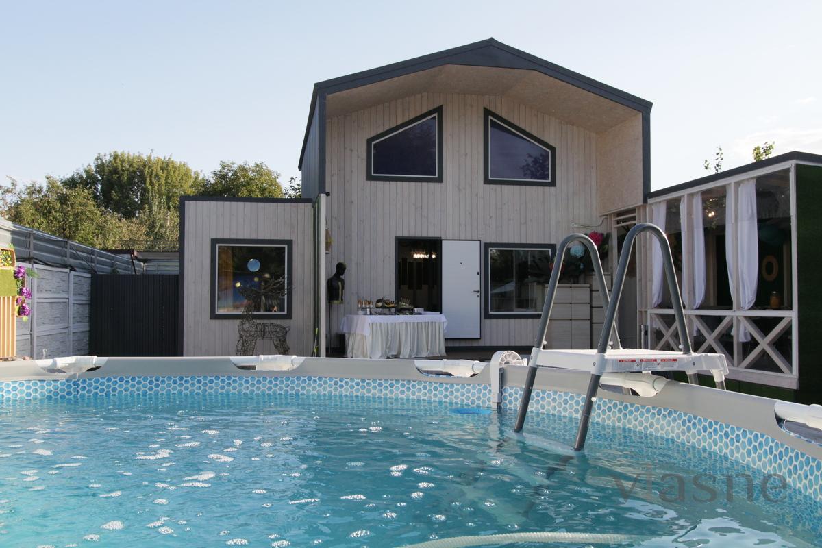 Rent a cabin with a swimming pool similar to Kiev for the beach, fishing, water repairs. The building is readily available in Kiev, Bila Dacha district, Sadova street, 3 km from the metro station. Gazebo, tent, barbecue. Variety ***8000 8 guests on weekdays*** ***10000 10 guests on weekdays *** - guests Friday or week ***20000 12 guests Saturday*** +1000 UAH surcharge per person if there are more guests.