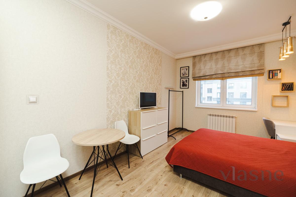 New studio in the new residential complex Graf Orlov near Moskovskaya. 5 minutes to metro. The complex has everything, shops, bakeries, etc. The chair unfolds, Ikea. Dishes, linen, wifi. Reporting documents are possible.