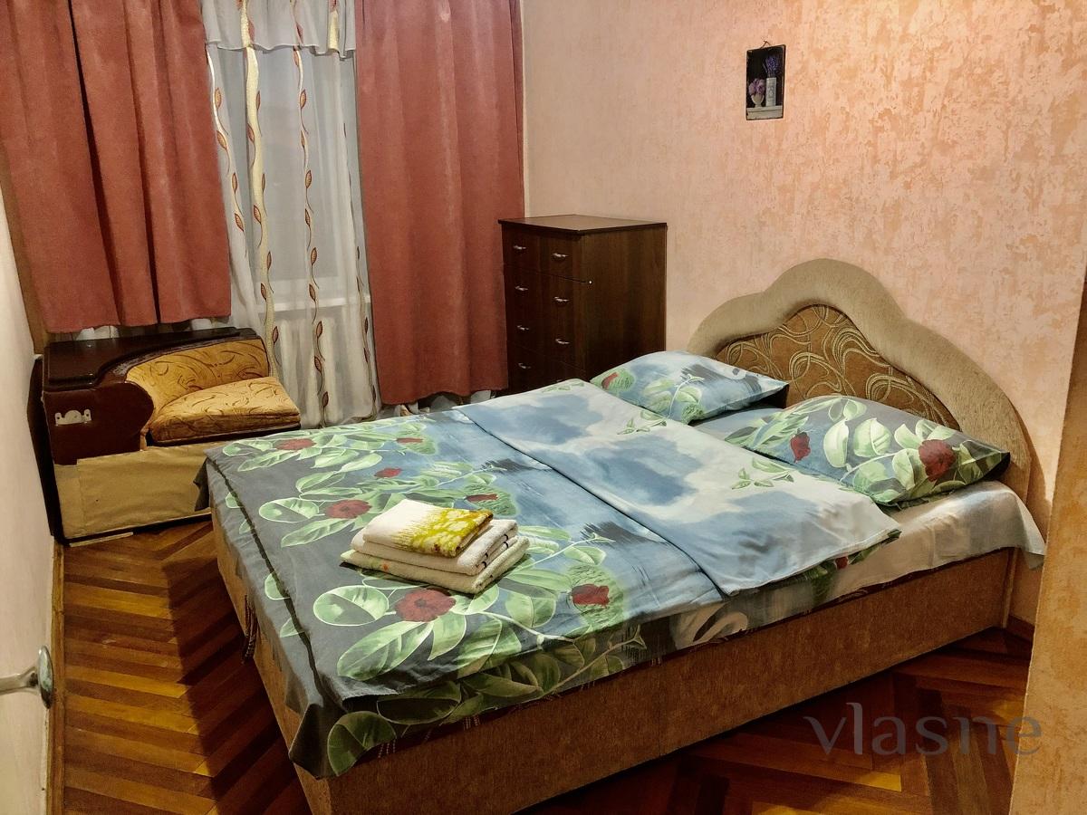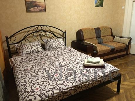 БУЛЬВ.ШЕВЧЕНКО, 243, ЦЕНТР. Видовая квартира в самом центре города, где сосредоточена вся инфраструктура жизнедеятельности города. С одной стороны вид на Днепр, с другой - на город. Полностью укомплектована всей мебелью и бытовой техникой. Спальные места: 2-х спальная кровать, 2-х спальный диван и 2-х спальный мягкий уголок (2+2+2).