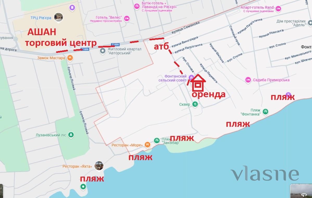 До моря 5-7 хвилин - красиві пляжі «Занзібар», великий пірс на якому відкривається чудовий краєвид на Одесу вночі, 15-20 хвилин спокійним кроком до ТРЦ Рів'єра - гіпермаркет Ашан, кафе, кінотеатр, боулінг і т.