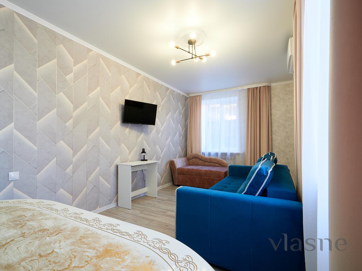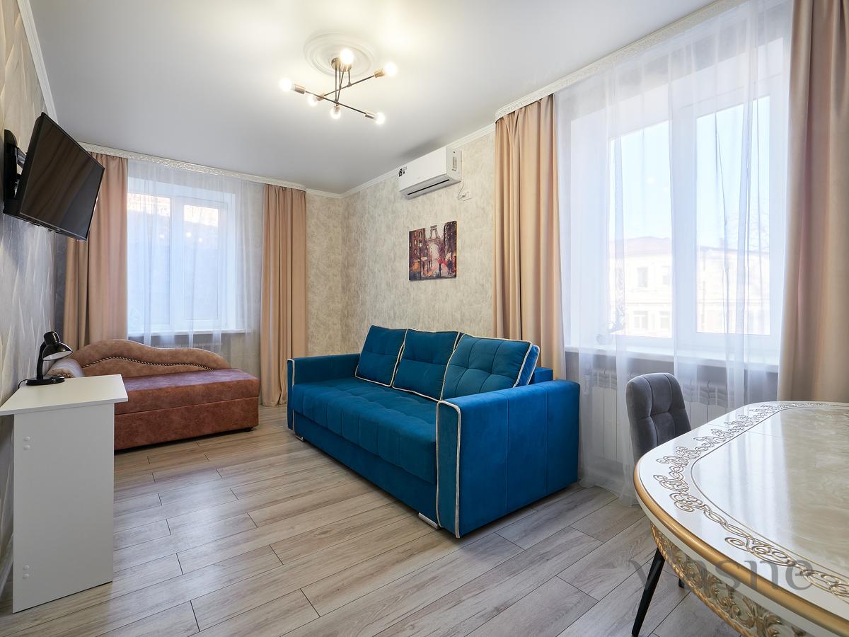 В парковой части исторического центра города сдаётся комфортная 2-х комнатная квартира со всеми удобствами с изолированными комнатами и раздельным санузлом. Новый ремонт, новая мебель и бытовая техника. Удобные спальные места с максимальным размещением до 5 человек. В квартире установлено индивидуальное регулируемое отопление, есть интернет Wi-Fi, 2 телевизора (20 каналов), стиральная машинка, сплит-система, электрический чайник, фен, утюг.