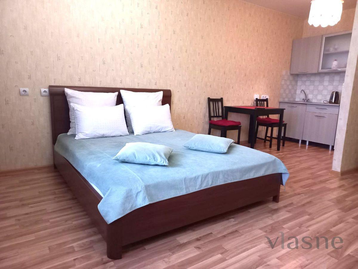- В шаговой доступности остановка, можно уехать в любую точку города. - Квартира чистая, уютная есть все необходимое для проживания и приготовления пищи. - Кухня оборудована необходимой бытовой техникой, а так же есть посуда . Все исправно и работает. - В студии ЖК телевизор, большая двух спальная кровать, диван раскладной. На диване могут разместиться 2 человека. - Предоставляется постельное белье, полотенце - (подушки,одеяло ) - Здесь могут остановиться гости нашего города, приехавшие в туристических целях или в командировку. Апартаменты обустроены всем необходимым гарнитуром для удобного проживания. Заезд с 14.00, Выезд до 12.00. - Обратите ВНИМАНИЯ : Квартира предназначена только для ПРОЖИВАНИЯ. - Размещение до 4 человек.( большая кровать, раскладной диван ) - Курение в квартире ЗАПРЕЩЕНО (разрешается на балконе). - Под мероприятия НЕ СДАЕТСЯ . - Работаем с организациями ,заключение договоров на проживания. - Можно воспользоваться услугой ТРАНСФЕР. - Оплата: НАЛИЧНЫЙ,БЕЗНАЛИЧНЫЙ расчет, сбербанк ОНЛАЙН. - Предоставляем все необходимые ДОКУМЕНТЫ ОТЧЕТНОСТИ. - При длительном проживании предоставляется СКИДКА до 30%. - цена от 1400 до 2000 рублей - Цена на сайте указана со скидкой !!! - Все вопросы можно задать по номеру телефону указанному в объявлении. - Так же можно написать нам : - Работаем КРУГЛОСУТОЧНО !!