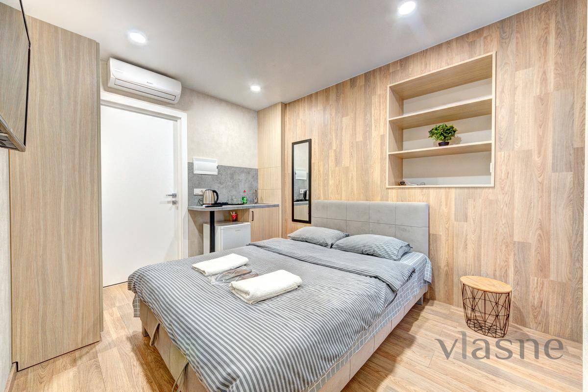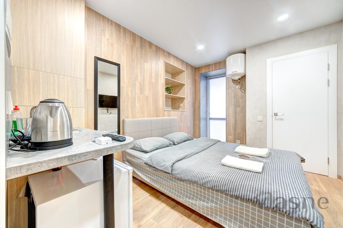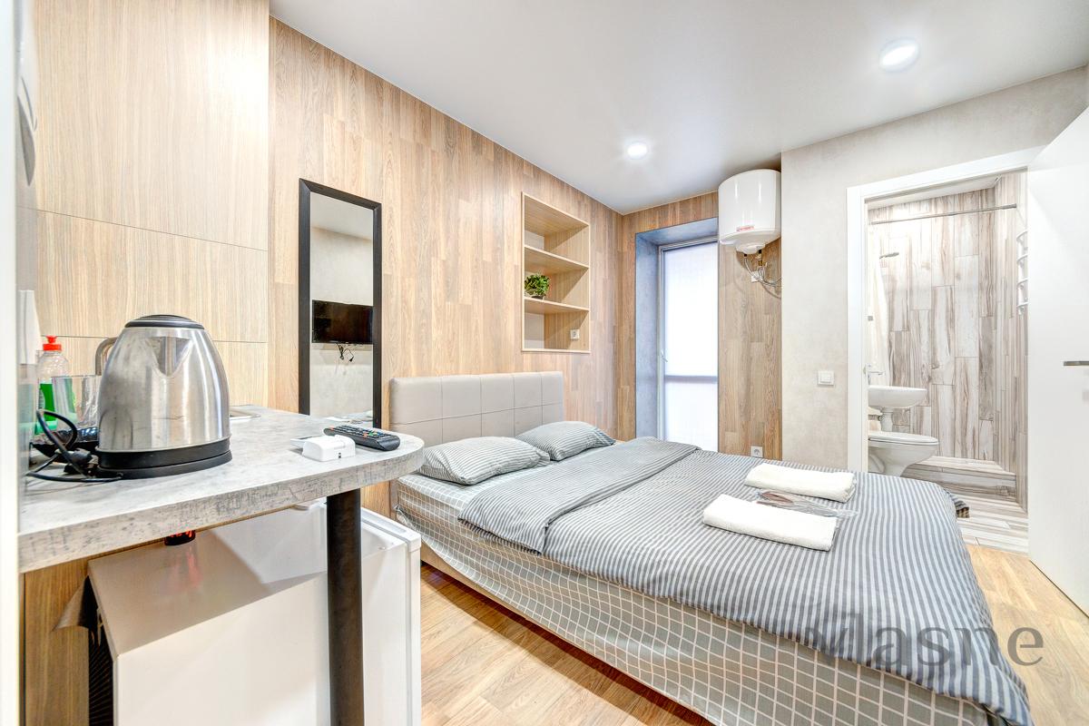 Поблизу в пішій доступності розташовані: ресторани, кафе, кав'ярні, відділення "Нова Пошта", супермаркет "Varus" та ТЦ Універмаг Україна. Квартира-студія з новим ремонтом, виконана у світлих тонах та затишними меблями.