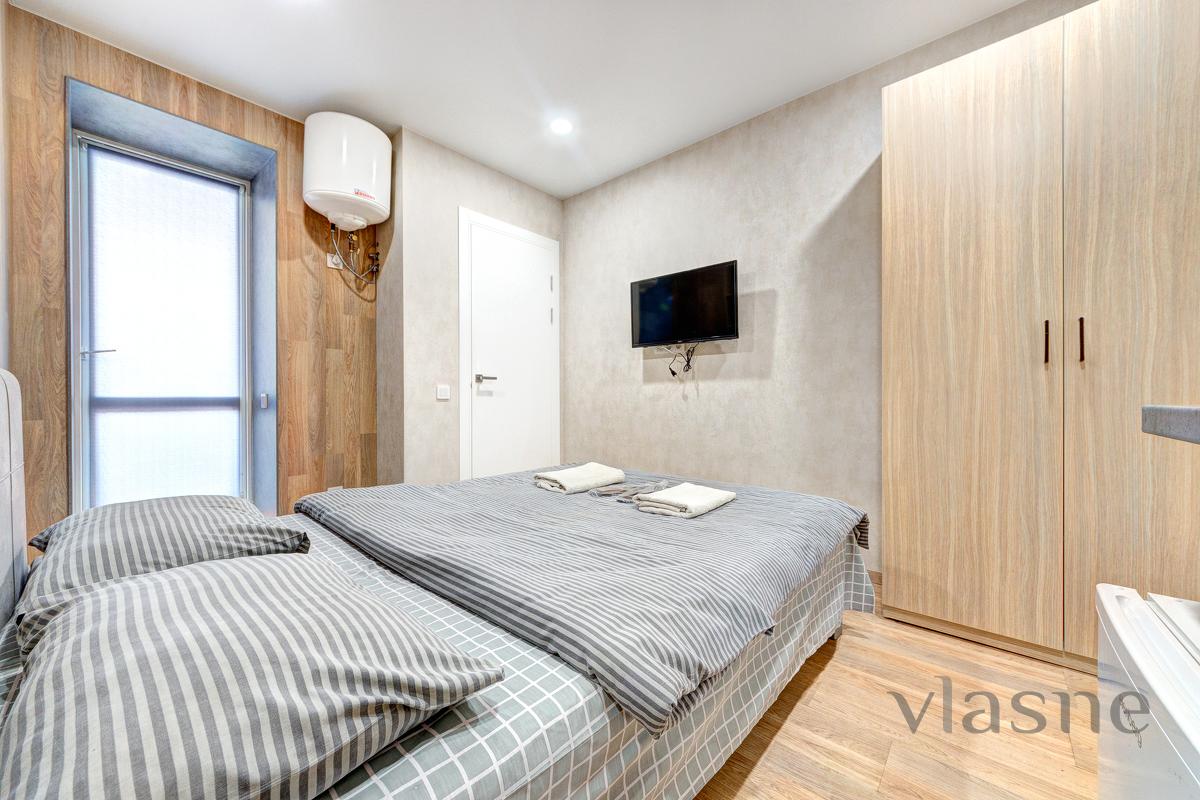 У квартирі є всі необхідні меблі для вашого комфортного відпочинку: двоспальне ліжко з ортопедичним матрацом, тумбочка, велика шафа для особистих речей.