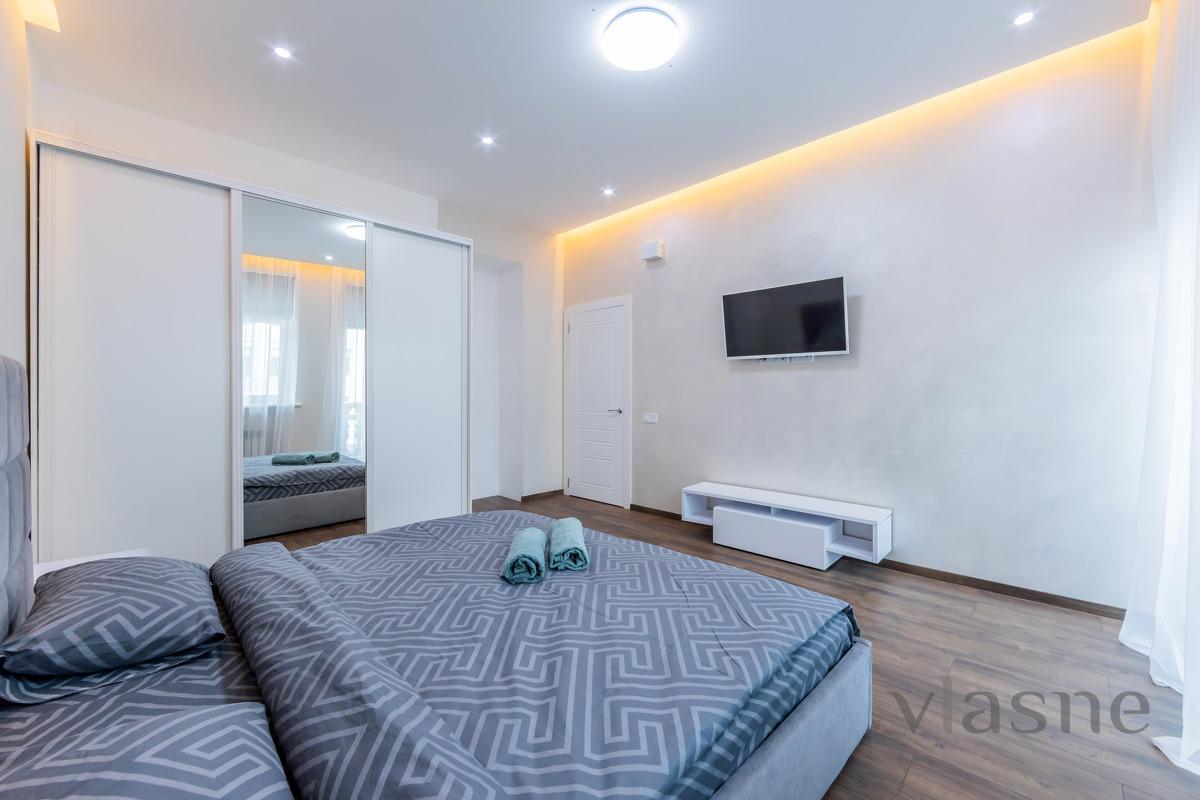 Апартаменти оформлені у сучасному стилі у світлих тонах. Поруч працюють багато закладів швидкого харчування. Ідеально підійдуть для розміщення родини чи невеликої групи осіб (до 6 осіб).