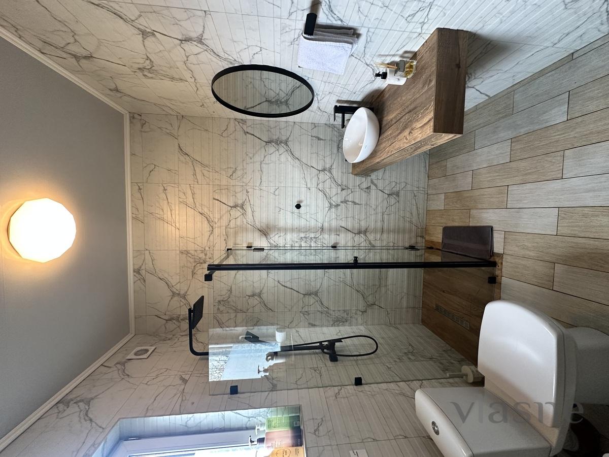 Первый этаж : кухня студия и санузел, тёплый пол.