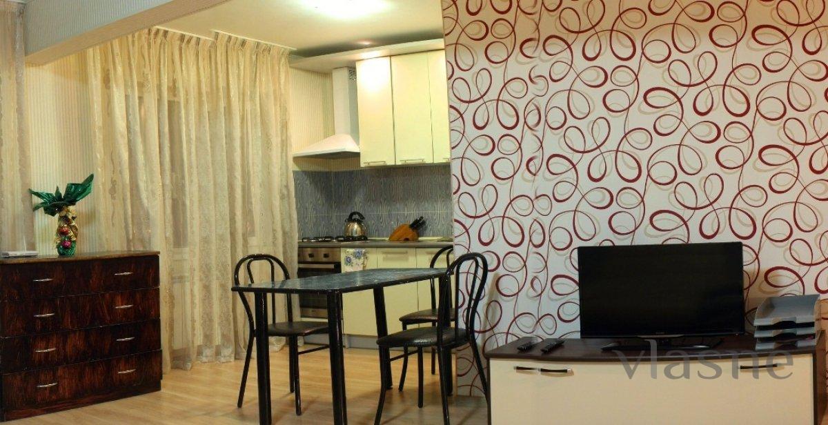 Центр города 1-комнатная квартира, 5/5 этаж, 2+1 спальных мест. Дизайнерский интерьер, удобный двуспальный диван-кровать, полностью оборудованные кухня и ванная комната.