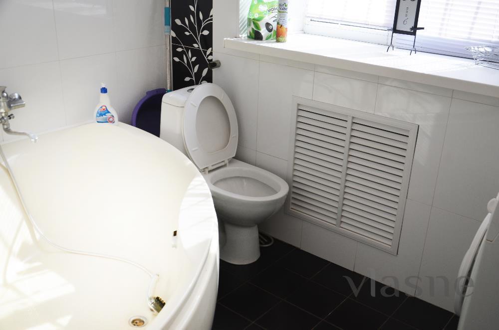 Квартира 80 кв.м, расположена на втором этаже трех этажного дома, состоит из спальни с двуспальной кроватью, комнаты с раскладным диваном и просторной кухни – гостиной ( тоже раскладной диван) , 2 с/у.