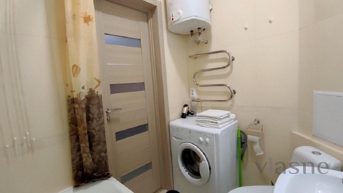 The bathroom has an additional washing machine, hairdryer, hygiene features, room price 1200 UAH/additional extra bed linen 100 UAH
