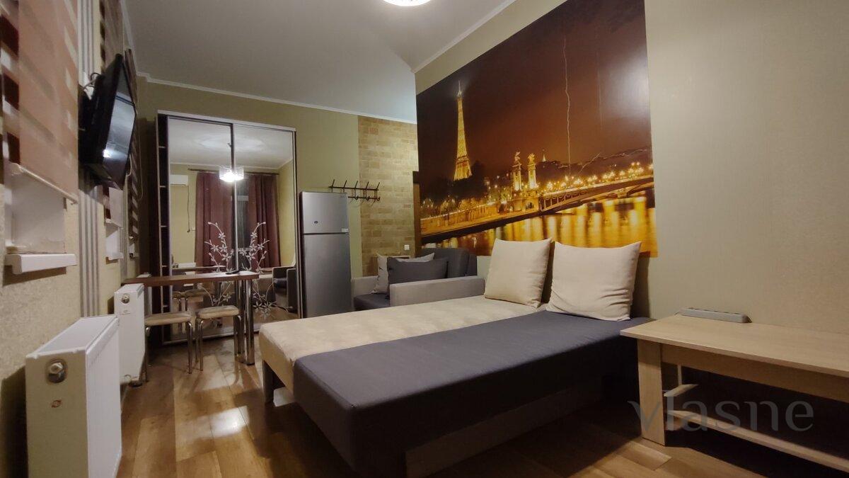 Apartments Levada hotel-type studio apartments for selection 14 pcs. Price from 850 UAH to 1200 UAH the price depends on the room class Standard, Comfort, Luxe Apartments Levada hand metro station Levada Bus station Aerokosmichny Avenue (gagarina) This is a great luxury room with a balcony, bed-sofa-sofa, linen, towels.