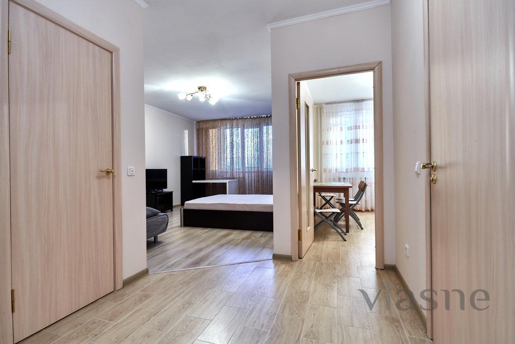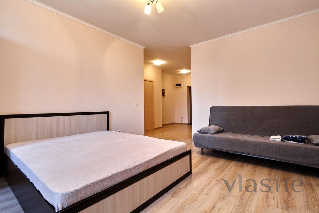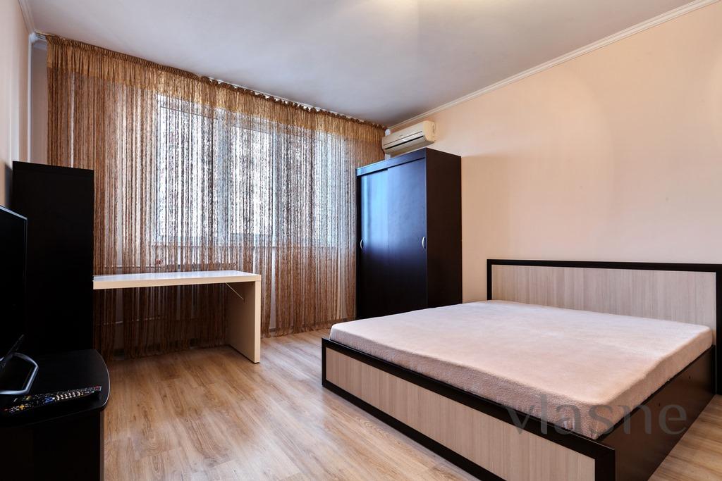 Apartment in a house business class! In this apartment you will find: • Comfortable double bed • double bed • LCD TV + Cable TV • Free Wi-Fi • All the necessary utensils and cutlery • Coffee Maker • Microwave • Ironing board and iron • Clothes dryer • Air conditioning • Washing machine • Dryer Facilities: The residential complex consists of three homes the 22-storey business-class.
