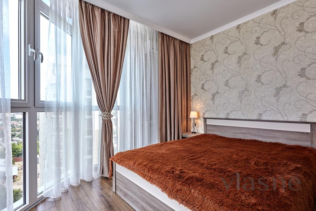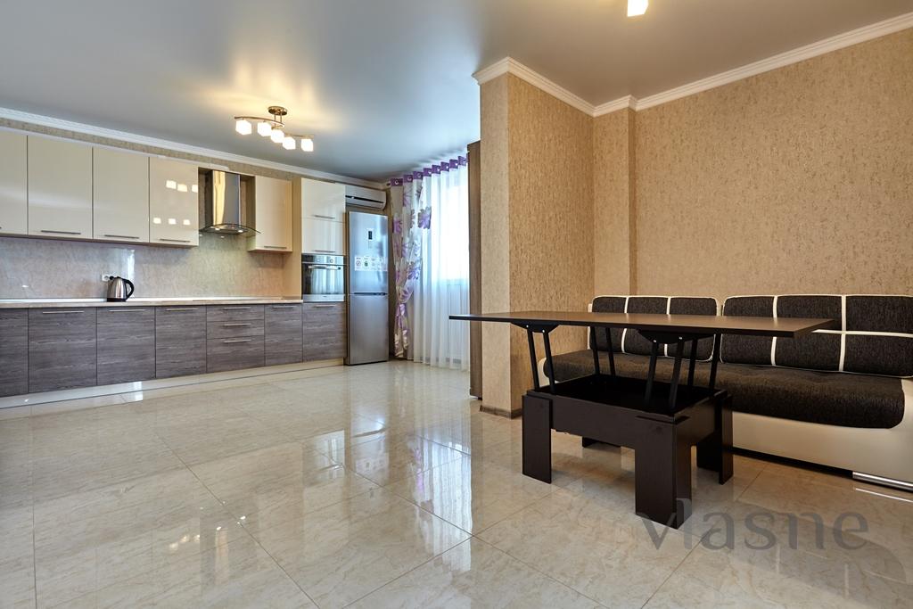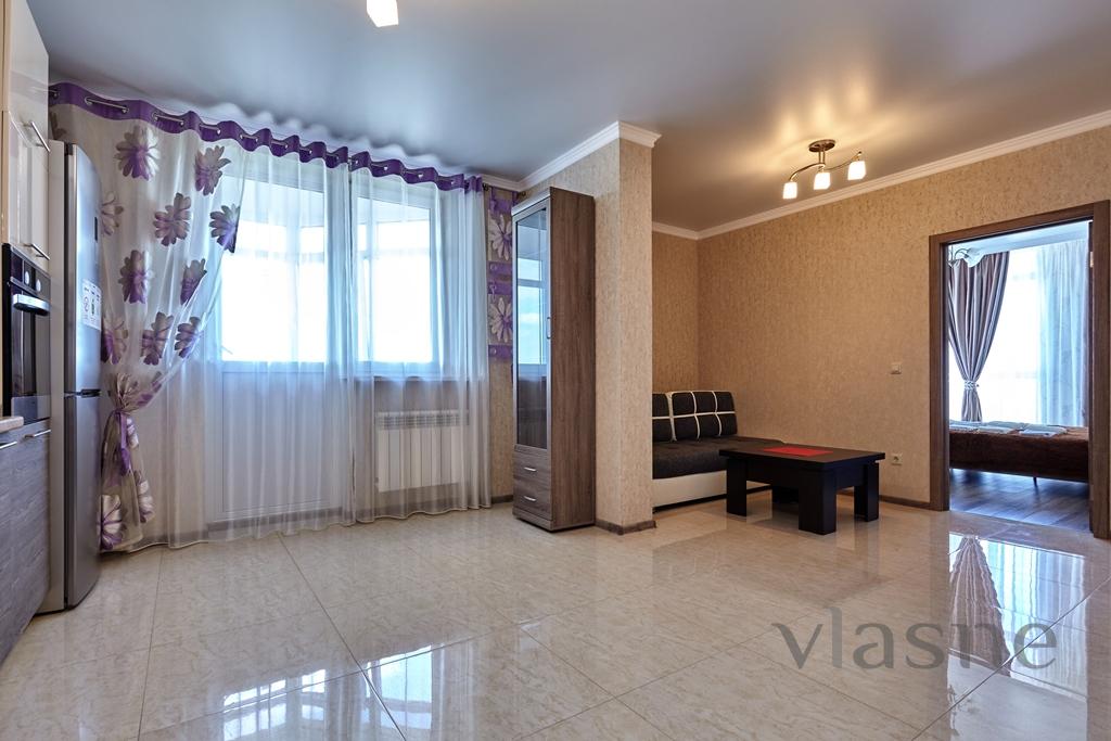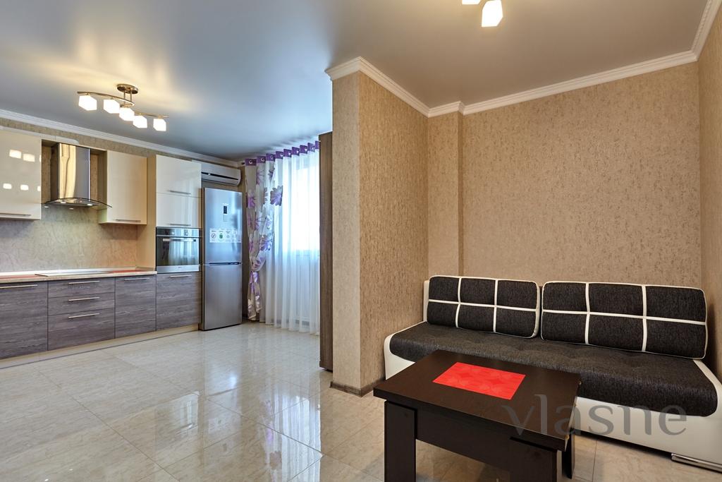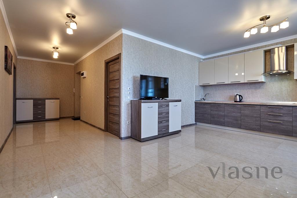 One of the best apartments in our city in the house business class! For hours does not give up in this apartment you will find: • Comfortable double bed • 2 dvuspalnhy sofas • Desk, which is transformed into a dining • LCD TV + Cable TV • Free Wi-Fi • All the necessary utensils and cutlery • Coffee Maker • Microwave • Ironing board and iron • clothes dryer in each room • Air Conditioning • Washing machine • Dryer • Large wardrobe • Panoramic view from the 20th floor of the entire city's infrastructure: The residential complex consists of three homes the 22-storey business-class.