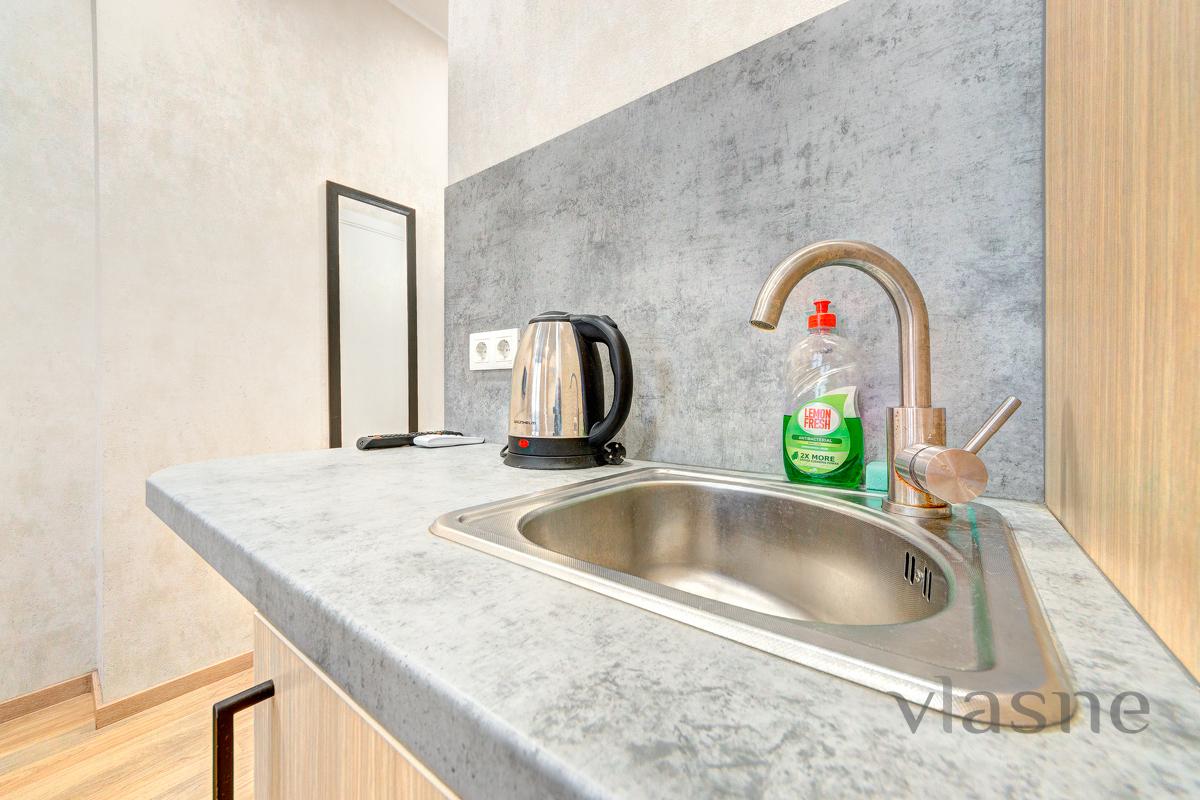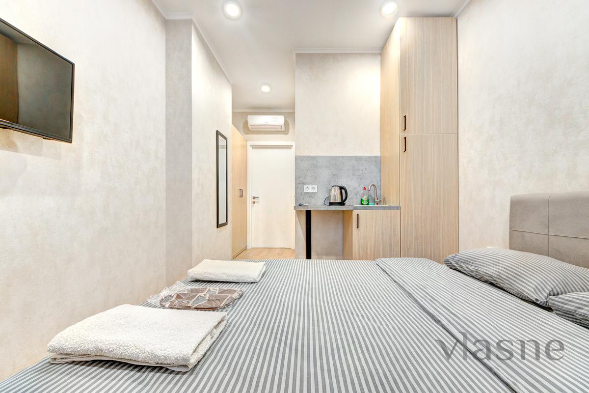Ortada, lavabolu bir tezgah, küçük bir dolap, buzdolabı, su ısıtıcısı ve gerekli tüm mutfak eşyaları ve gereçleri içeren küçük bir mutfak alanı bulunmaktadır. Dairede konforunuz için gerekli tüm mobilyalar mevcuttur: ortopedik yataklı çift kişilik yatak, özel konuşmalar için geniş bir gardırop. Konforunuz ve karşılamanız için klima ve TV mevcuttur. Dairede Wi-Fi mevcuttur. Sıhhi tesisat duşa bağlıdır, ortada bir lavabo vardır ve hijyen önlemleri ilk sırada yer almaktadır. Her zaman temiz, beyaz giysiler ve temiz havlular bulacaksınız. Hafta sonu kiralık daire müsaitliği için lütfen telefon numarasını kontrol edin. Hızlı rezervasyon için arayın!