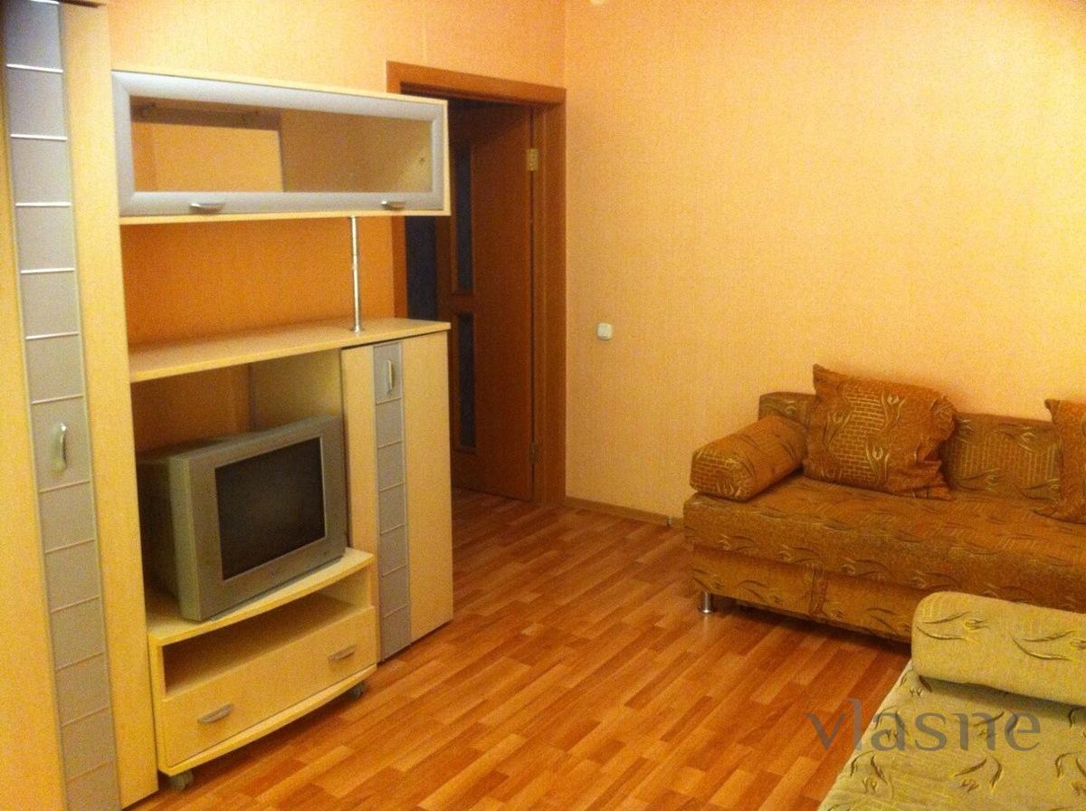 Spacious one bedroom apartment in a residential area of Tyumen, has everything you need for a comfortable stay, furniture, appliances, home of red brick 2009 built, large yard, plenty of parking, a good playground for children, two lifts, a house under video surveillance, a court protected, near is Judo center mall favorite tape, subway, south, Auchan, a crystal, a tennis center, a green house, in the courtyard of shops, hairdressers, on the ground floor of a rehabilitation center, within walking distance of the regional clinic, convenient travel to Patrushevo hospital in apartment there are beds, a bed and two sofas, full kitchen where you can cook the food, the necessary equipment, issue a clean bed linen, towels, bath accessories there, dishes, provide all the necessary documents business travelers, all apartments have vayfay, and cable TV.
