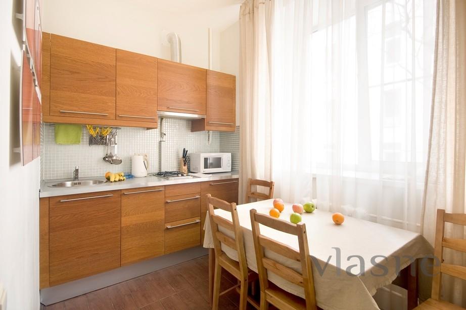 Medical center "M +" The apartment is equipped with all necessary appliances and furniture. Comfortable bed and sofa-bed. The kitchen has utensils and appliances needed for cooking. For you to provide free services: a purely linens and towels -cleaning apartment and change of bed linen 1 time per week -bezlimitny Internet, Wi-Fi Call and book an apartment: 1-day 1500 r. 5 sut.-1400 p.