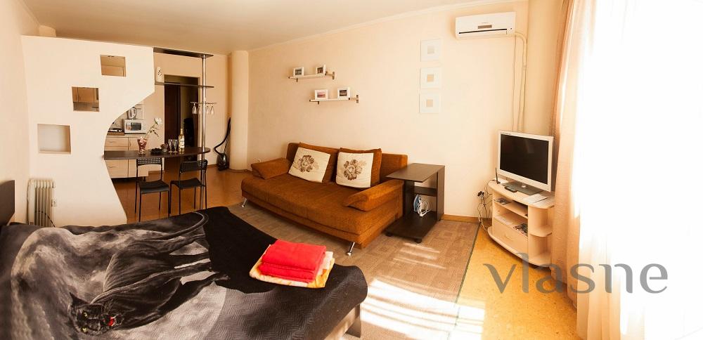 Cable TV and unlimited Wi-Fi to help you while away the evening. Very convenient option for 4 people. Cleaning apartment and change of bed linen, towels after each arrival and on request. On weekends or holidays, as in long-term lease, the number of guests, price of an apartment varies.