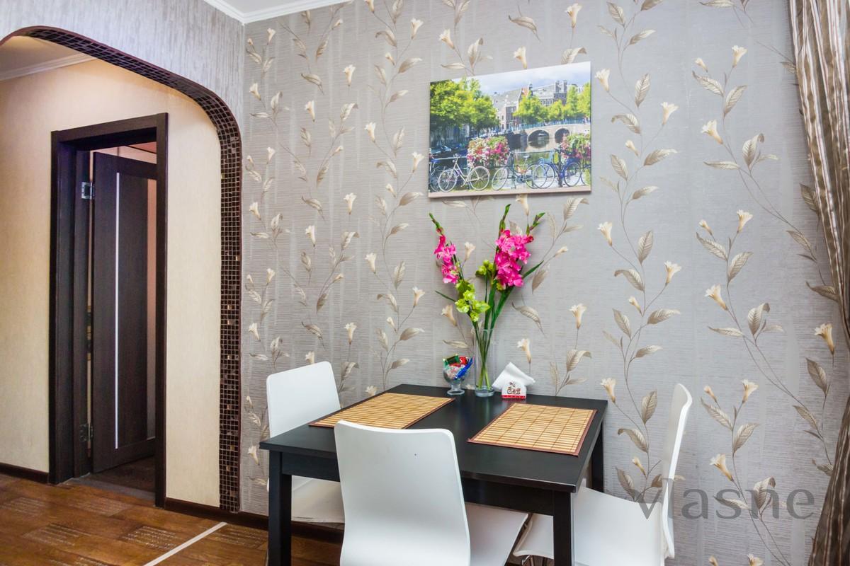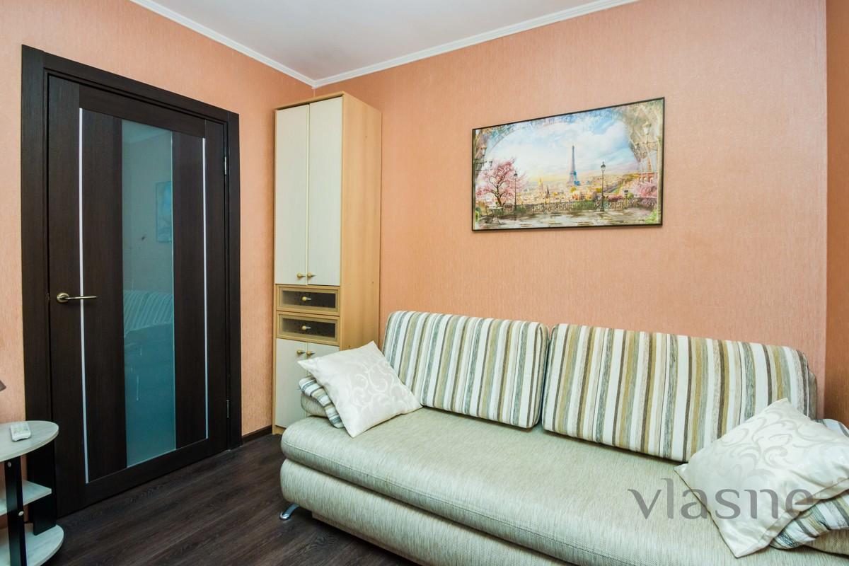 The apartment is located in a new brick house with a closed territory with a barrier and video surveillance, in the courtyard there is a large playground. At the house there is a supermarket "Monetka", "Red and White", Pharmacy. The apartment has all the necessary utensils for cooking, bedding, complete sets of bed linen and towels.