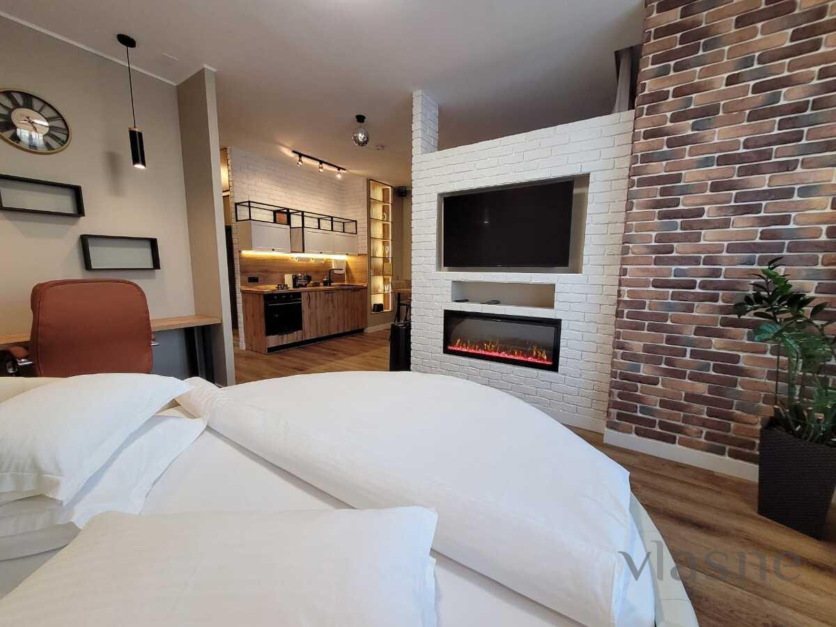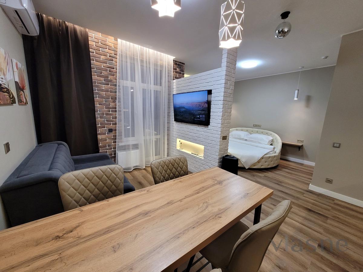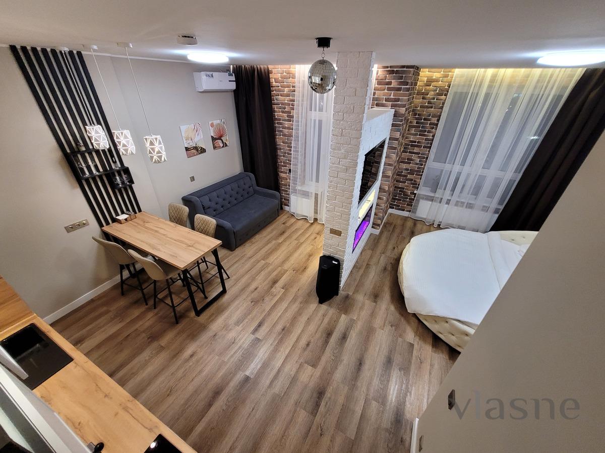 1 room Luxury-premium studio apartment with sauna, jacuzzi, round bed, fireplace. SPA-Apartments for those who value a high level of comfort with additional privileges! Suitable for business travelers, newlyweds, family vacations and romantic dates! Ideal for a surprise! • Maximum level of service and quality; • Cleanliness and comfort; • Thoughtful design in loft style; • Convenient location; • The apartment has everything you need for your comfortable stay.
