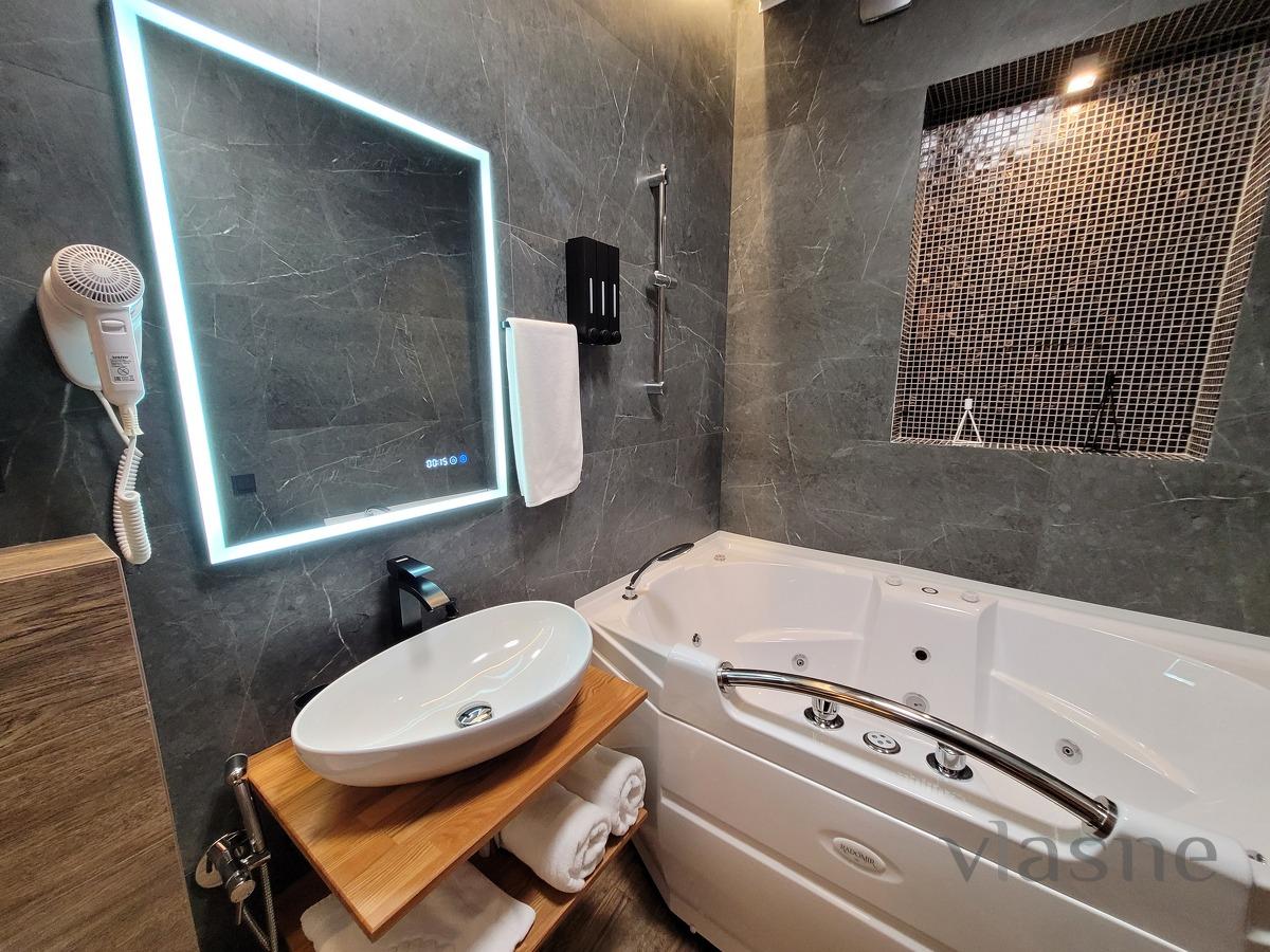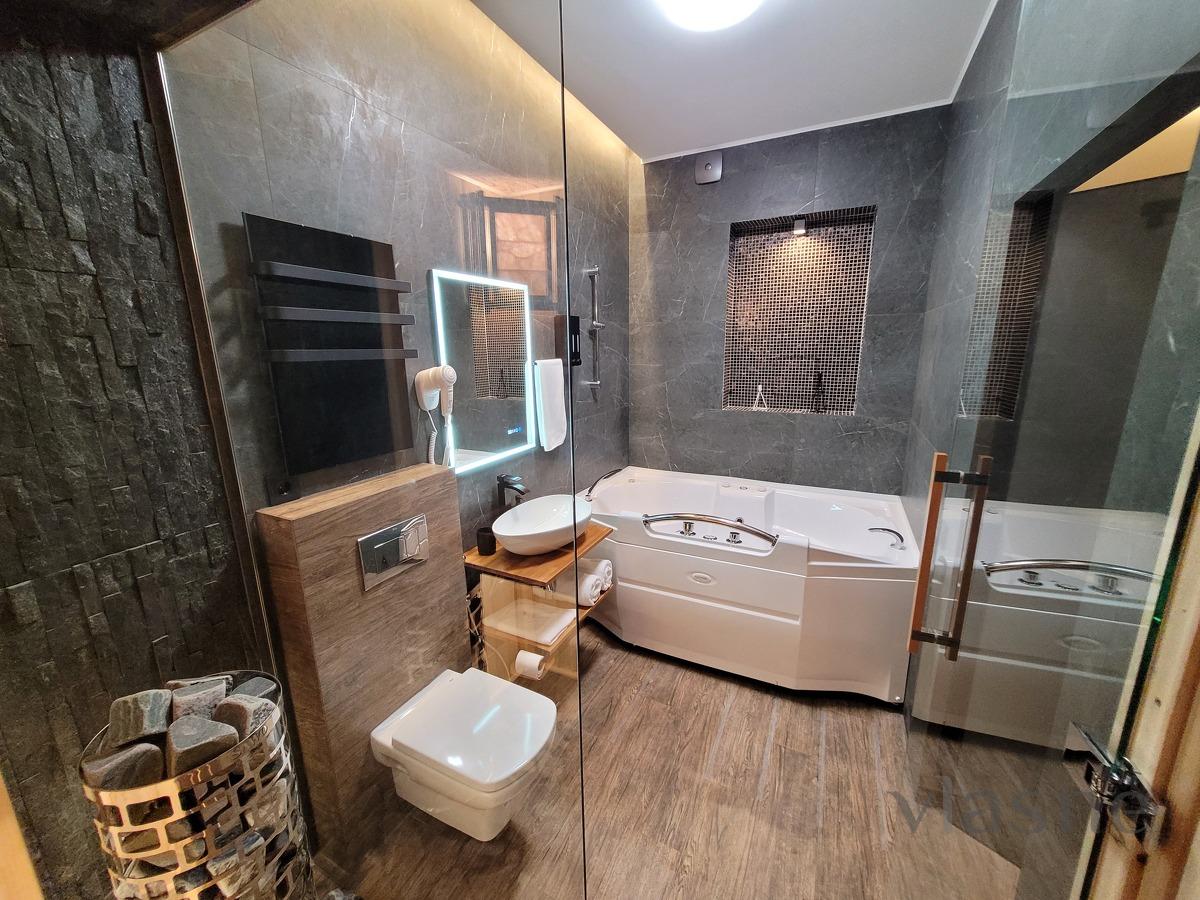 Round bed (240*240), 2-person Jacuzzi bathtub with hydromassage, lighting and KOLLER MILK system (oxygen spa therapy), sauna, fireplace, light music, professional audio system, smart TV, air conditioning, fully equipped kitchen, safe, spacious bathroom, hairdryer, toiletries. COST: Day/night: 8500 rub. Fri, Sat: p. Reservation with 50-100% prepayment! CONDITIONS OF ARRIVAL: • Check-in 14.00 - check-out 12.00. • deposit 3000 rub. (Returned on the day of departure) • have your original passport with you. THE PRICE INCLUDES: • accommodation for up to 2 people; • final cleaning, change of bed linen and towels after each guest. • hygiene products. ADDITIONALLY PAID: • COLLER MILK (oxygen spa therapy) • early check-in with additional payment for the previous day; • late check-out with additional payment for the next day; • accommodation for more than 2 people (children under 7 years old stay free of charge without an extra bed) • terry robes PROHIBITED: • smoking • parties • with animals