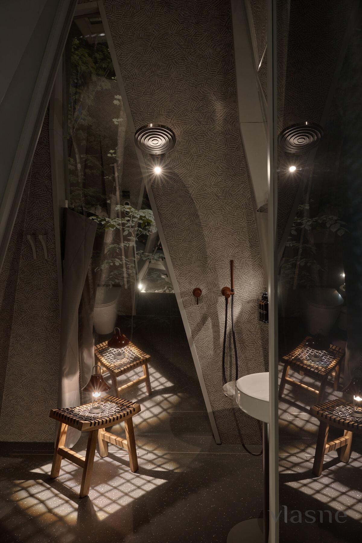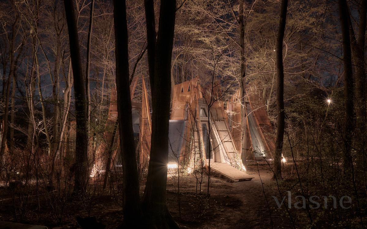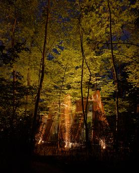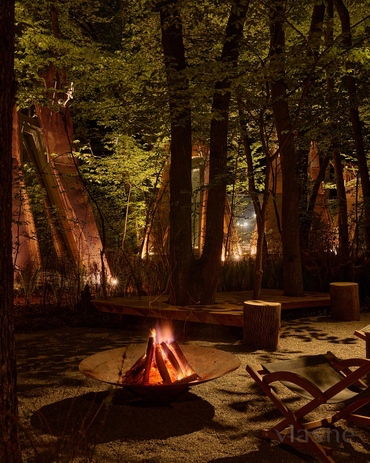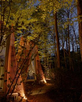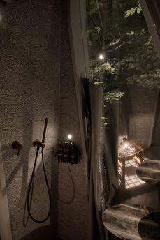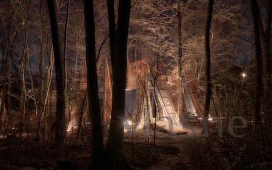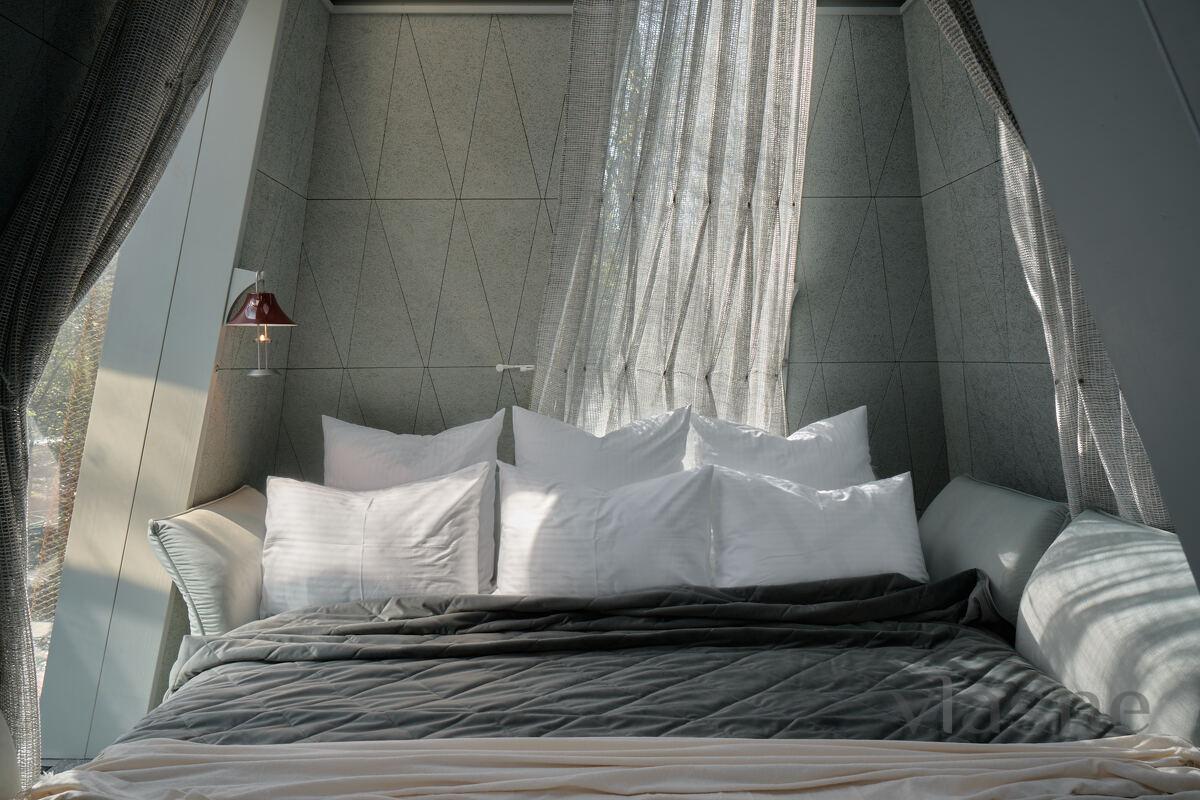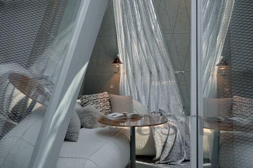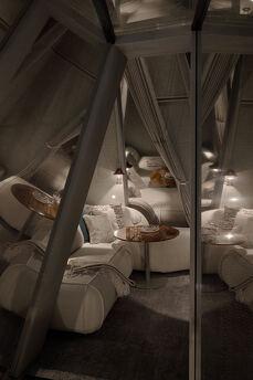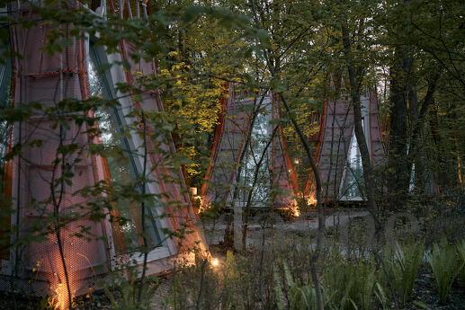 Duvarlar yerine kullanılan pencere fenerleri sonsuz bir alan hissi yaratarak odadan gökyüzünün muhteşem manzaralarını görmenizi sağlıyor. Özellikle odalar arasında dolaştığınız geçitler düşmancadır; böyle anlarda sanki küçük ev ile orman arasındaki sınırlar siliniyormuş gibi hissedersiniz ve doğayla tam anlamıyla çelişirsiniz.