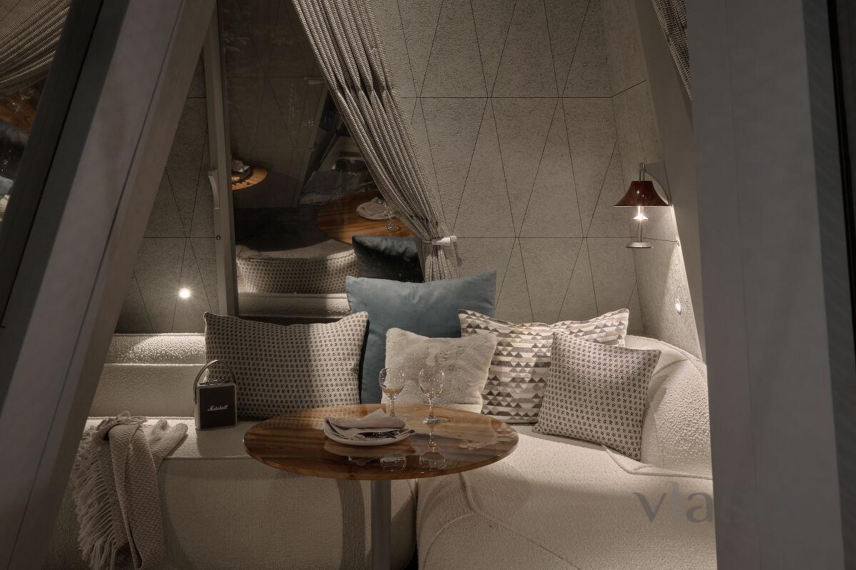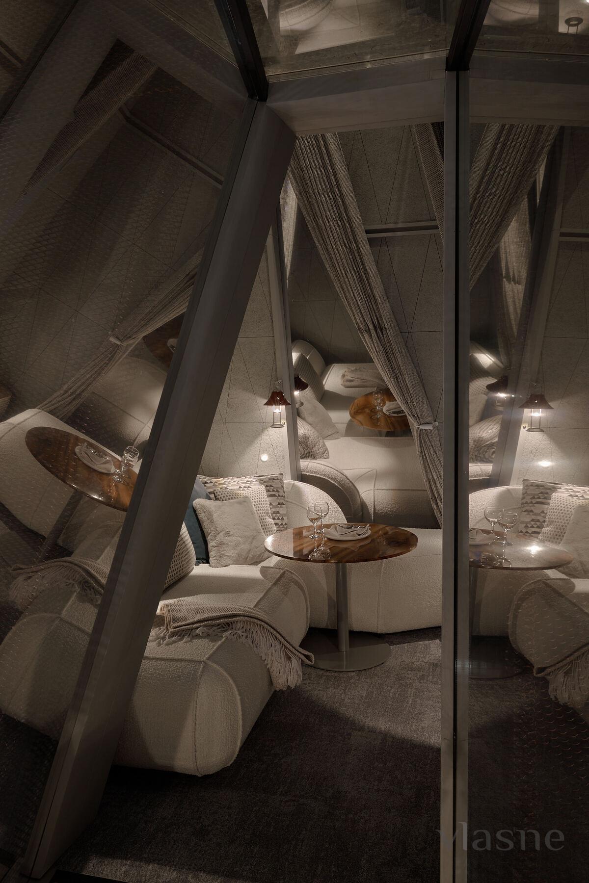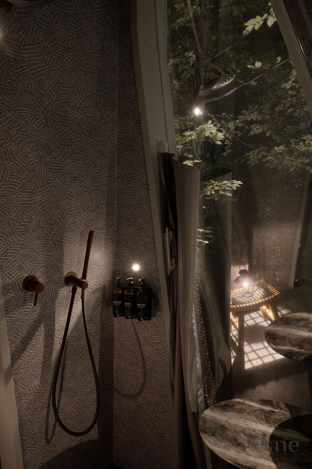 Budinochok “Kış” - glamping Namety için yardım! Pavyonlarımızın en büyüğü olan bu oda (45 m²), size huzur, konfor ve eşsiz bir estetik görünüm kazandırmak için yaratılmıştır. Küçük evimizin derisi kaderin gözeneklerinden esinlenerek tasarlanmış, kendine özgü bir stile sahiptir. Alt kış renkleriyle dekore edilen “Kış” kabininde, sakin bir oturma odası, bir yatak odası, geniş bir oturma odası, duş odası ve ormanın panoramik manzarasına sahip bir banyo bulunmaktadır.