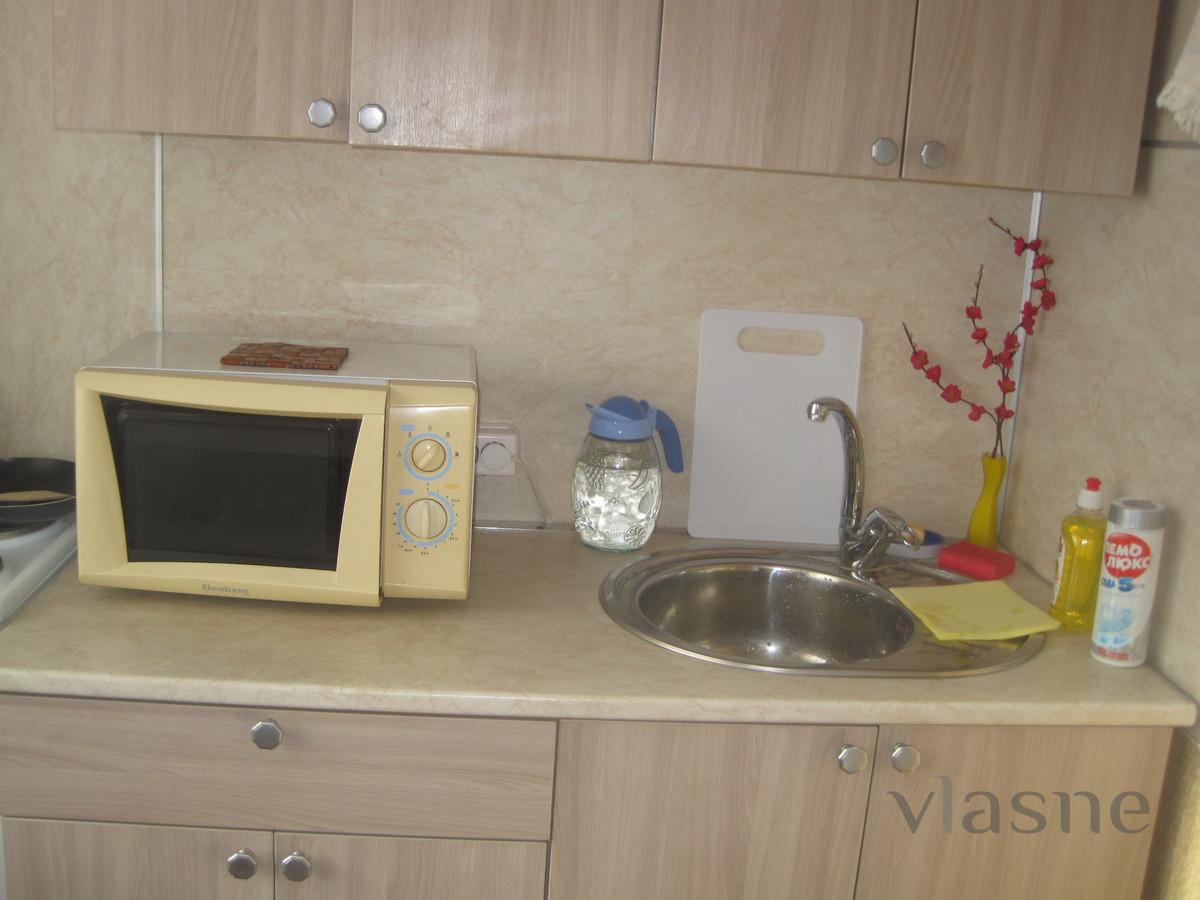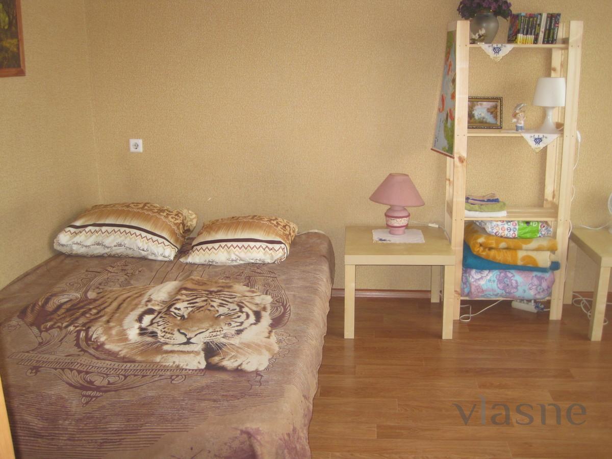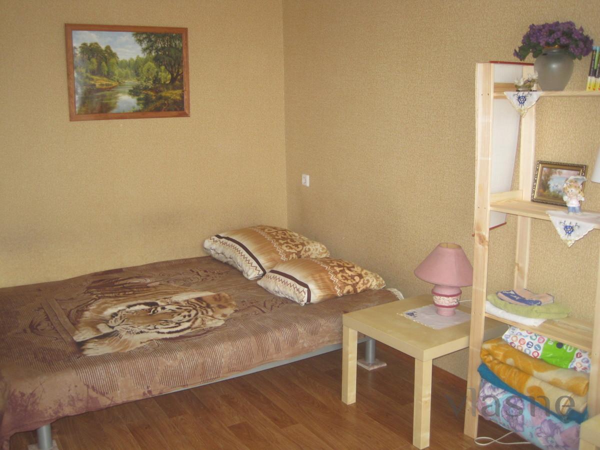 Rent an inexpensive cozy 1-room apartment in Novosibirsk without intermediaries for 1-2 people (by the hour, day). From household appliances: TV, refrigerator, oven. There is a kitchen set, a double bed. After each customer, a general cleaning is carried out. Bath and toilet - cleaned. On the kitchenware you will not find dirty tracks.
