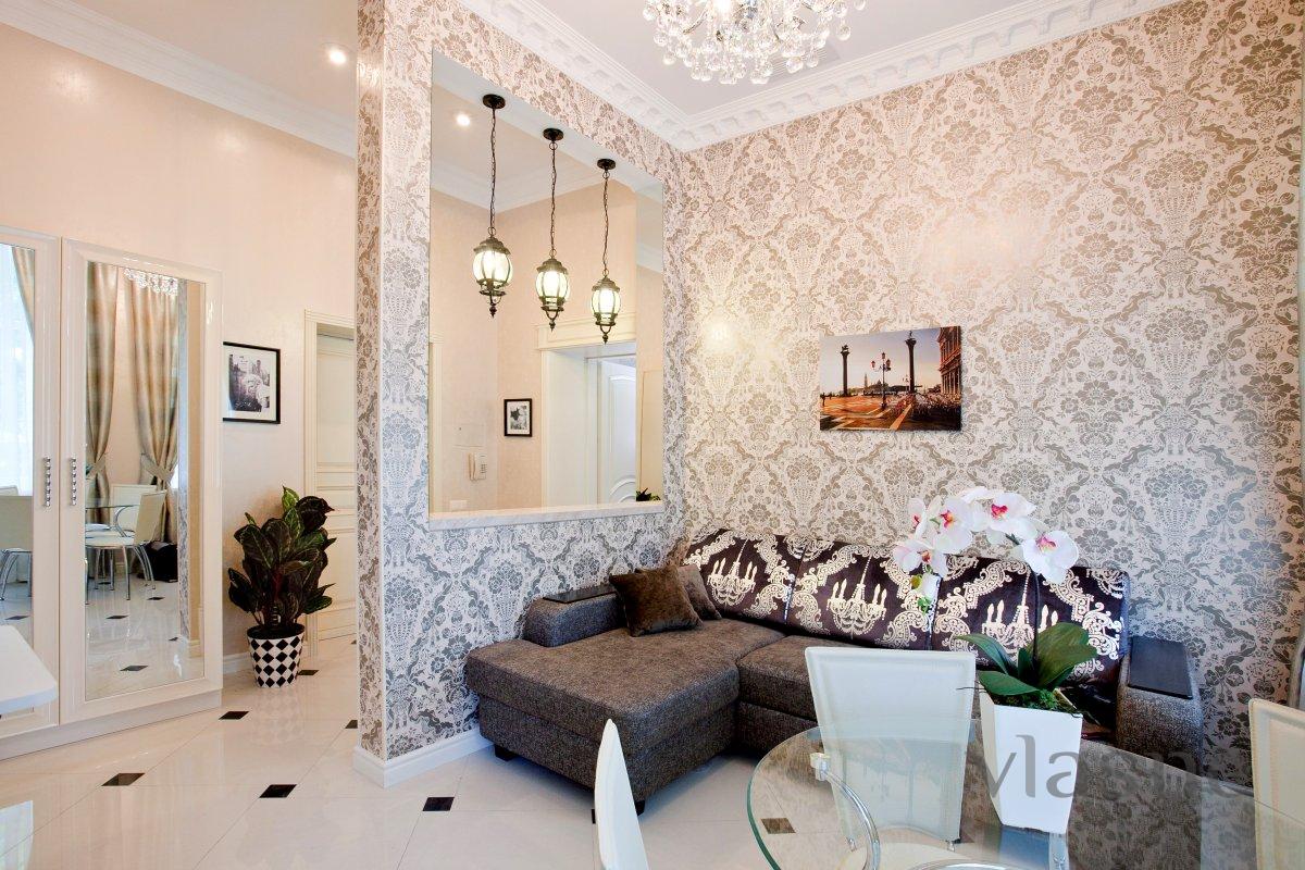 Нові двокімнатні апартаменти в самому серці Одеси, що складаються з ізольованою кухні, вітальні та спальні. Апартаменти в стилі арт-деко виконані в білому кольорі, придающем квартирі особливий блиск і ошатність. Диван, що розкладається із зручним ортопедичним матрацом у вітальні і двоспальне ліжко в спальні дають можливість розміститися двом парам.